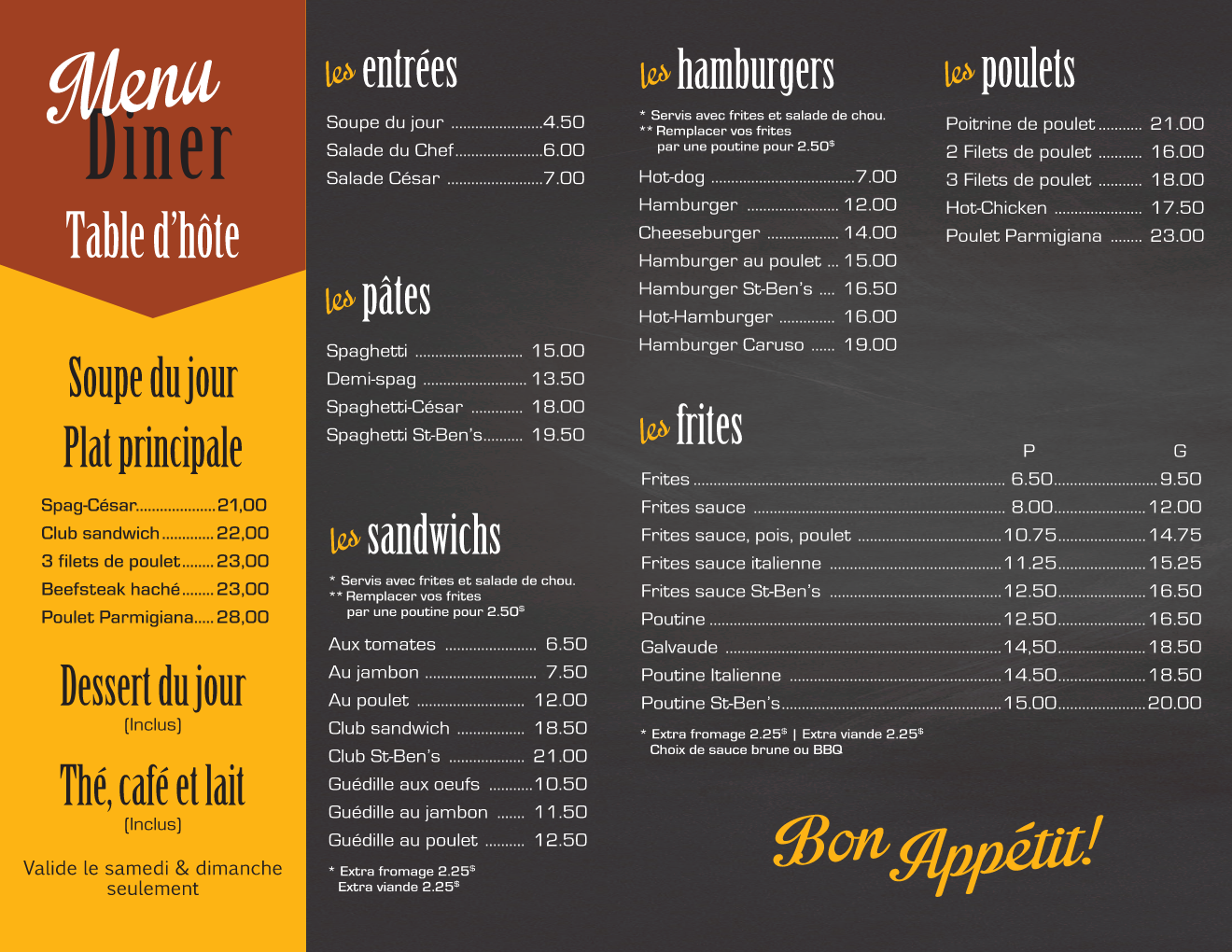 Menu Dîner